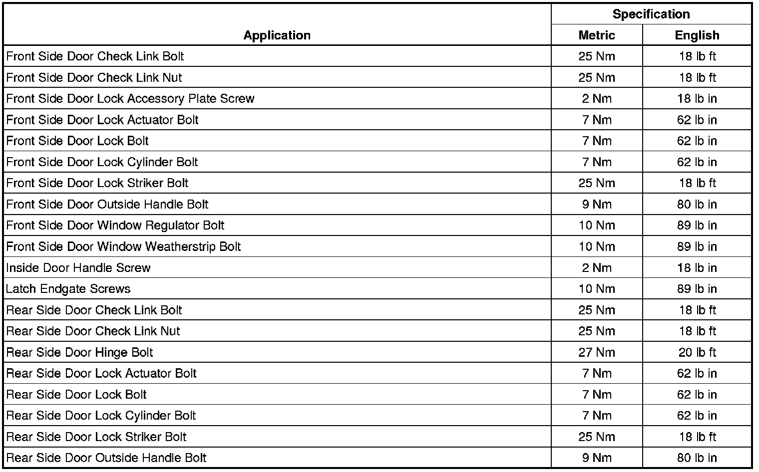 Fastener Tightening Specifications
