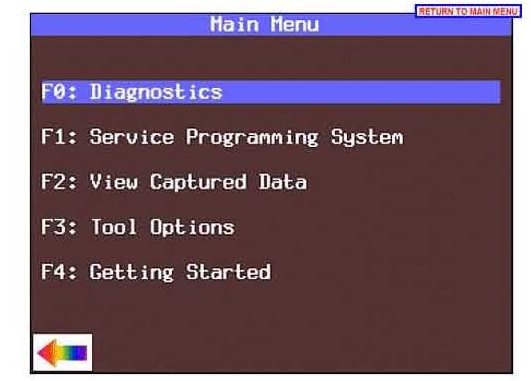 3. From the Main Menu select F0: Diagnostics.