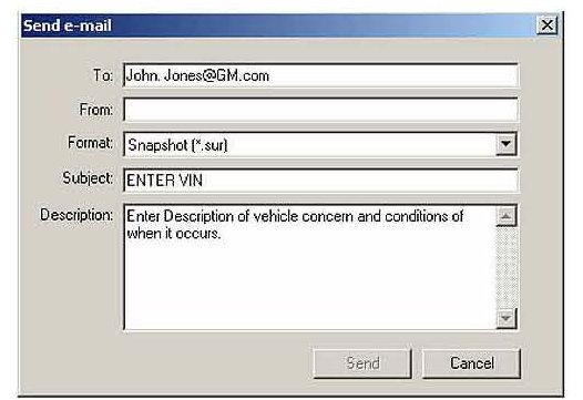 5. After selecting Send to e-mail, a dialog box like the one shown in Figure 12 will be displayed. Fill in the information as requested and then click send. Include the VIN in the subject line.