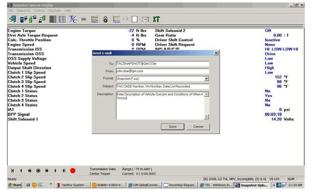 During your call with GM TAC on a current case, you may be advised to send a copy of the Tech 2(R) or VDR Snapshot Data to the TAC e-mail box.