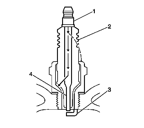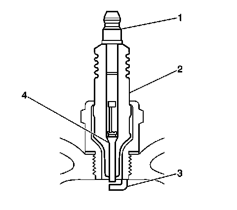 * Inspect for the correct spark plug torque. Refer to Ignition System Specifications (Specifications). Insufficient torque can prevent correct spark plug operation. An over torqued spark plug, causes the insulator (2) to crack.