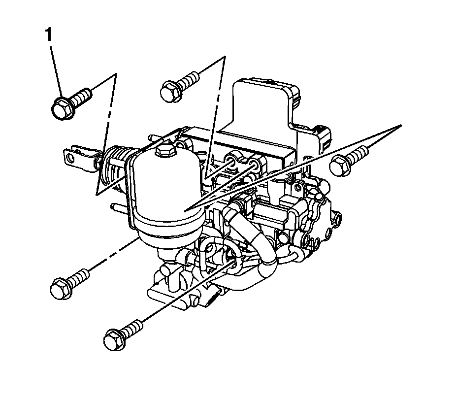 9. Remove the electronic brake control module (EBCM) with BPMV assembly bolts (1).