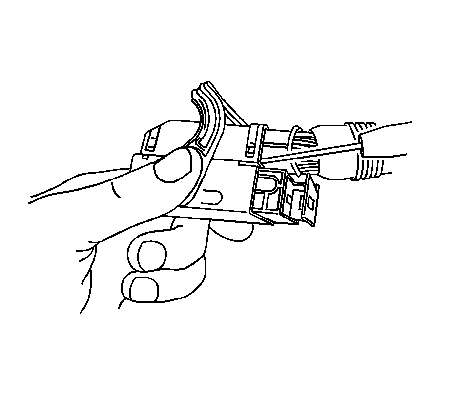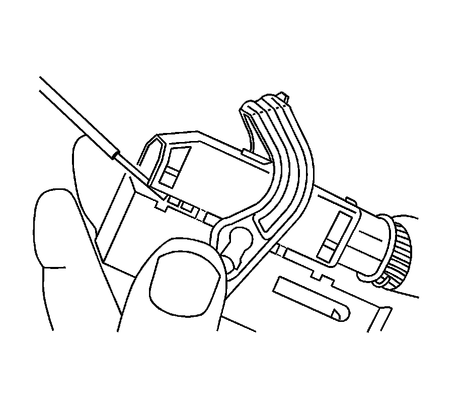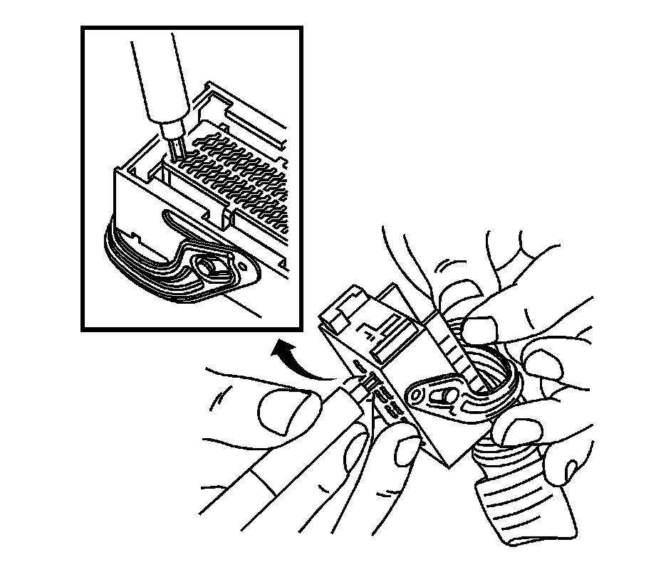 11. Insert the J 38125-560 into the 2 triangular cavities on each side of the terminal at the front of the connector. See the release tool cross reference in the Reference Guide of the J-38125 to ensure that the correct release tool is used.