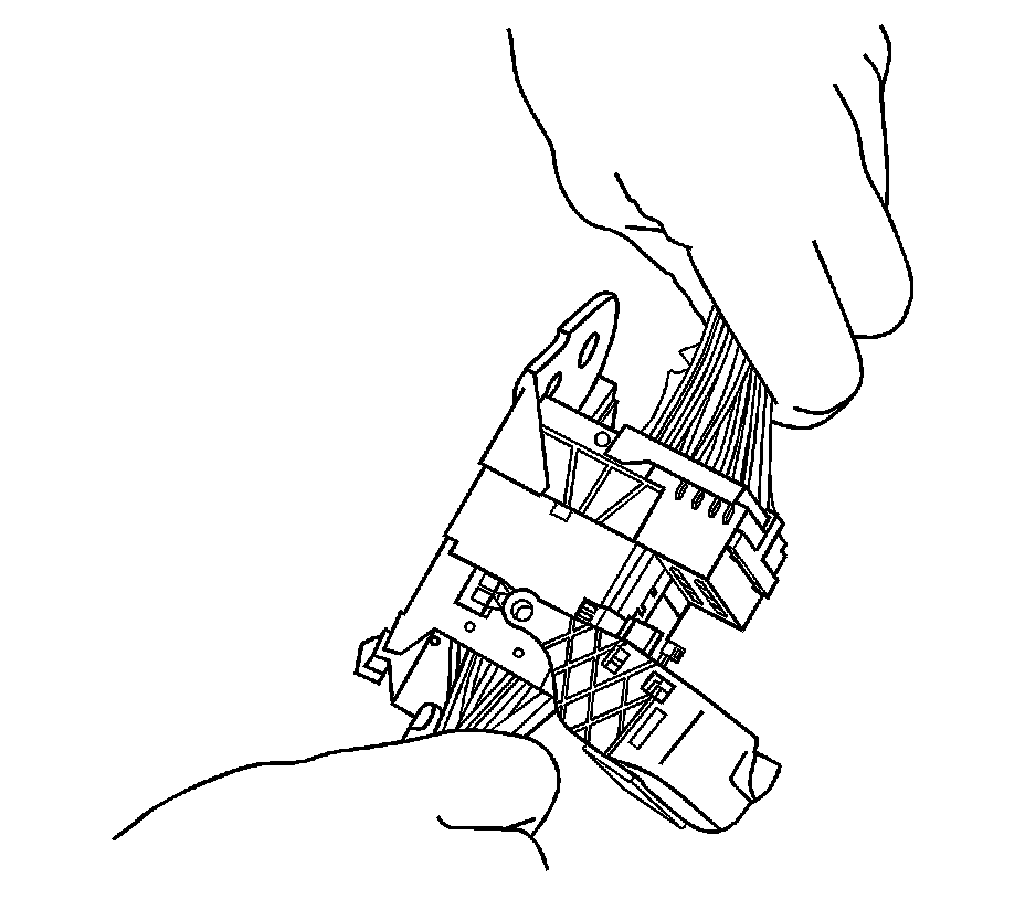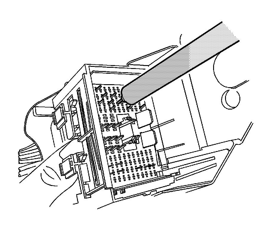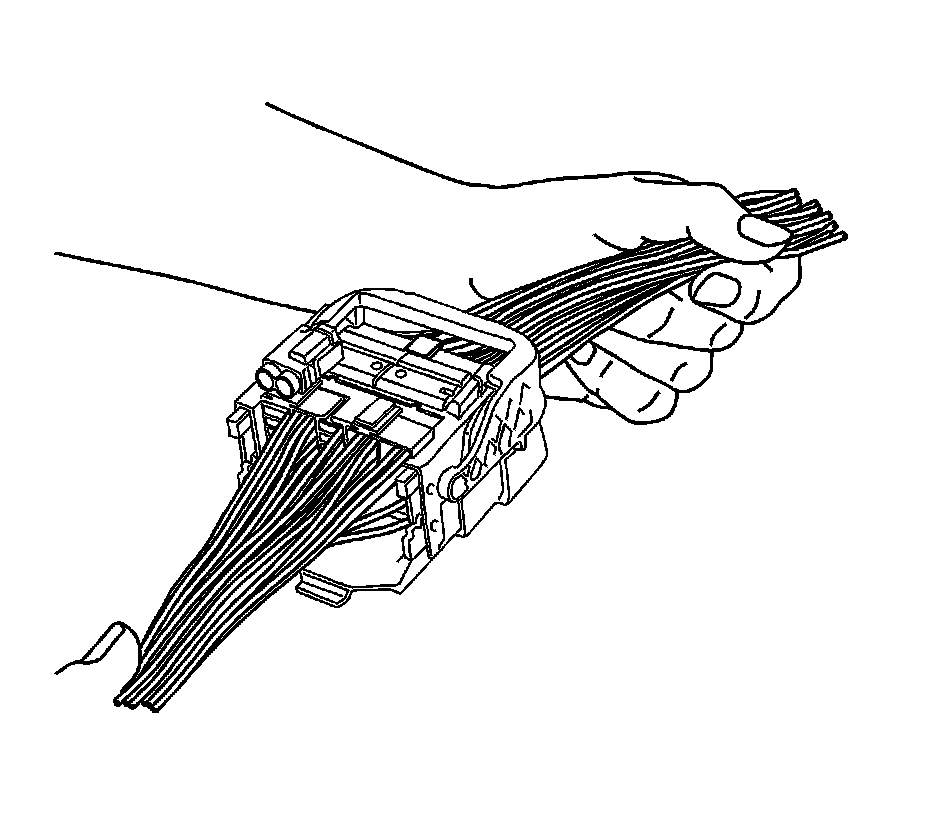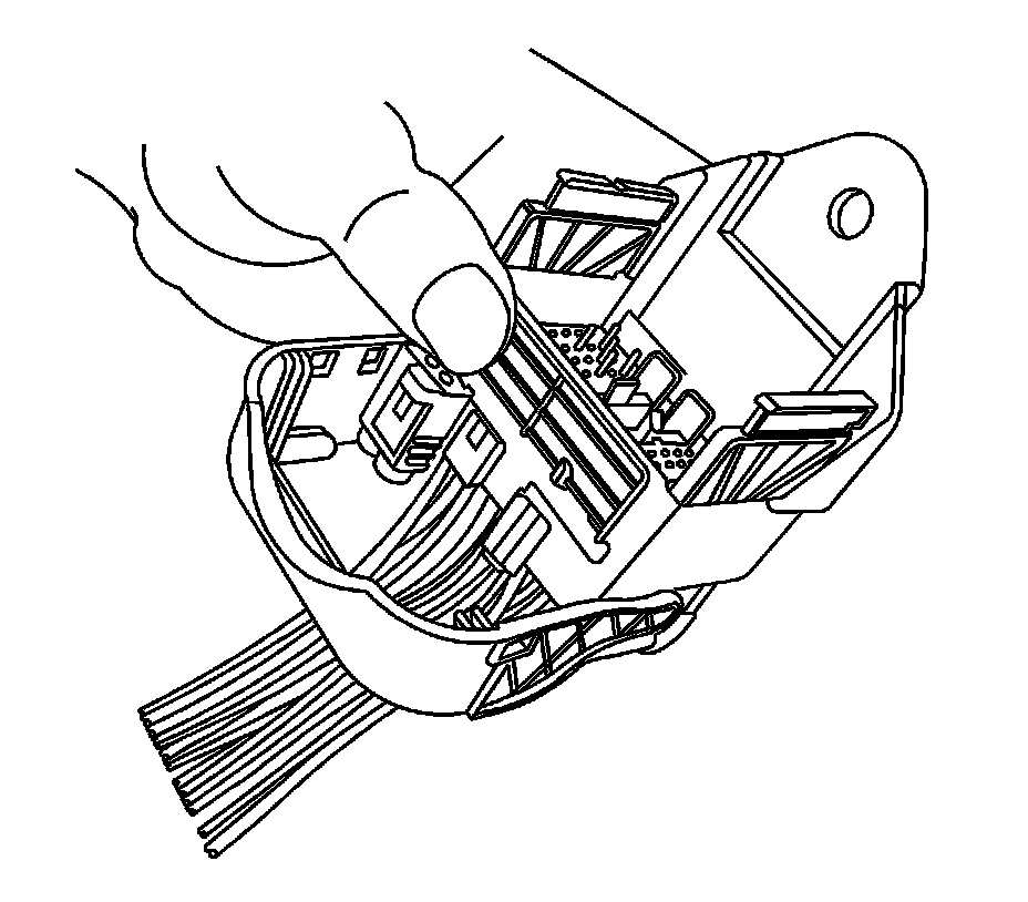 8. The female connector body may have an additional connector hooked to the edge of the body. Use terminal release tool J-38125-11A or equivalent to release the locking tab and slide the connector off the female body.