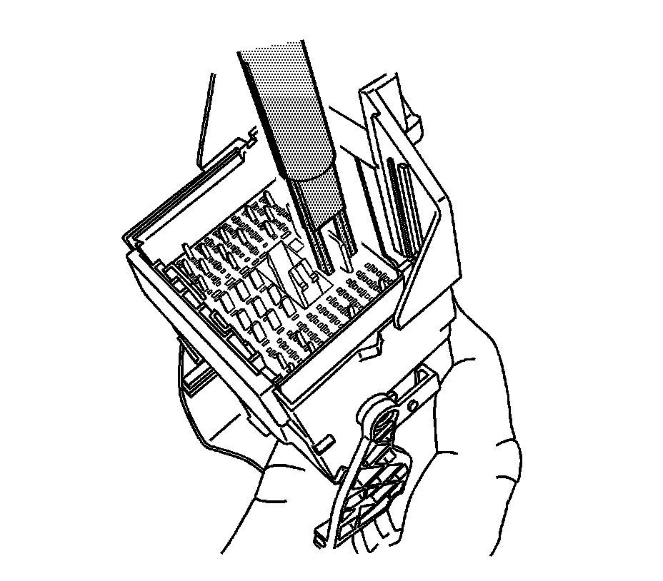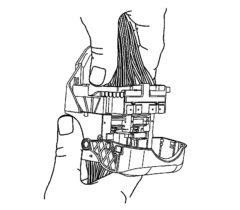 12. Using terminal release tool J 38125-216, lift the terminal plate past the terminals and out of the connector body cavity.