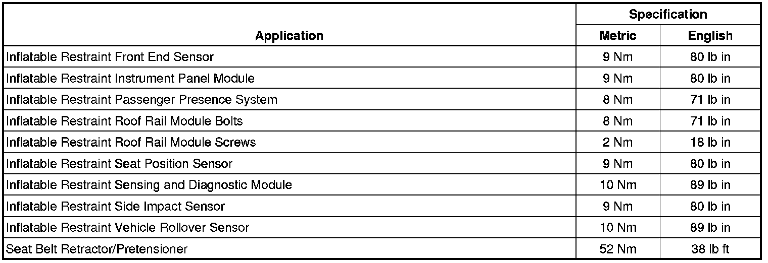 Fastener Tightening Specifications