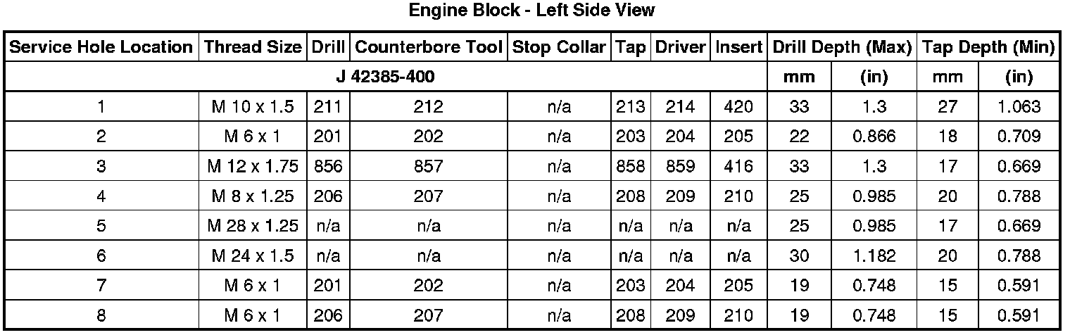 Home >> Hummer >> 2010 >> H3 L5-3.7L >> Repair and Diagnosis >> Specifications >> Mechanical Specifications >> Engine >> System Specifications >> Thread Repair Specifications