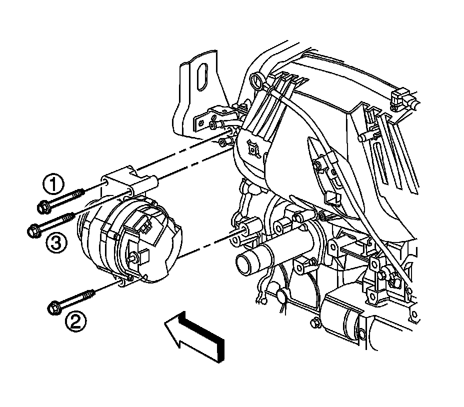 2. Install the 3 generator bolts and tighten in sequence to 50 Nm (37 lb ft).