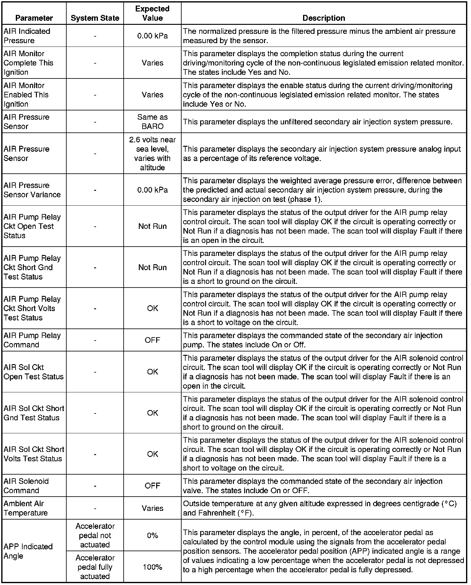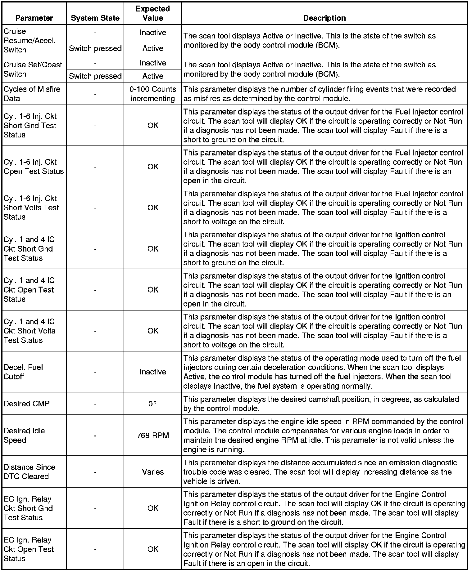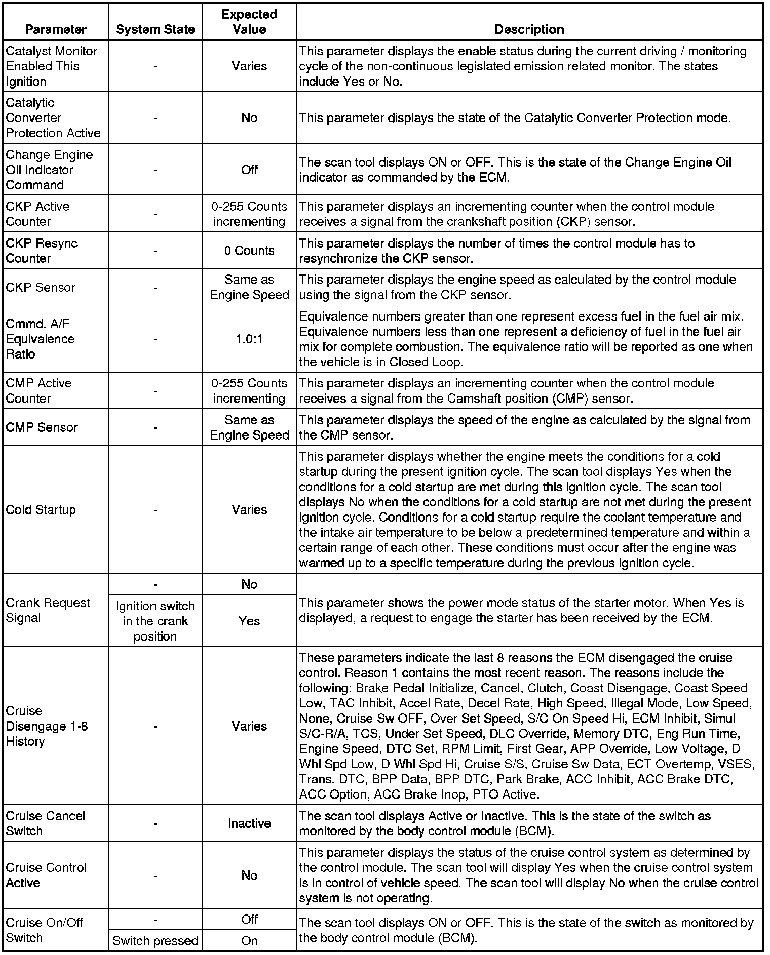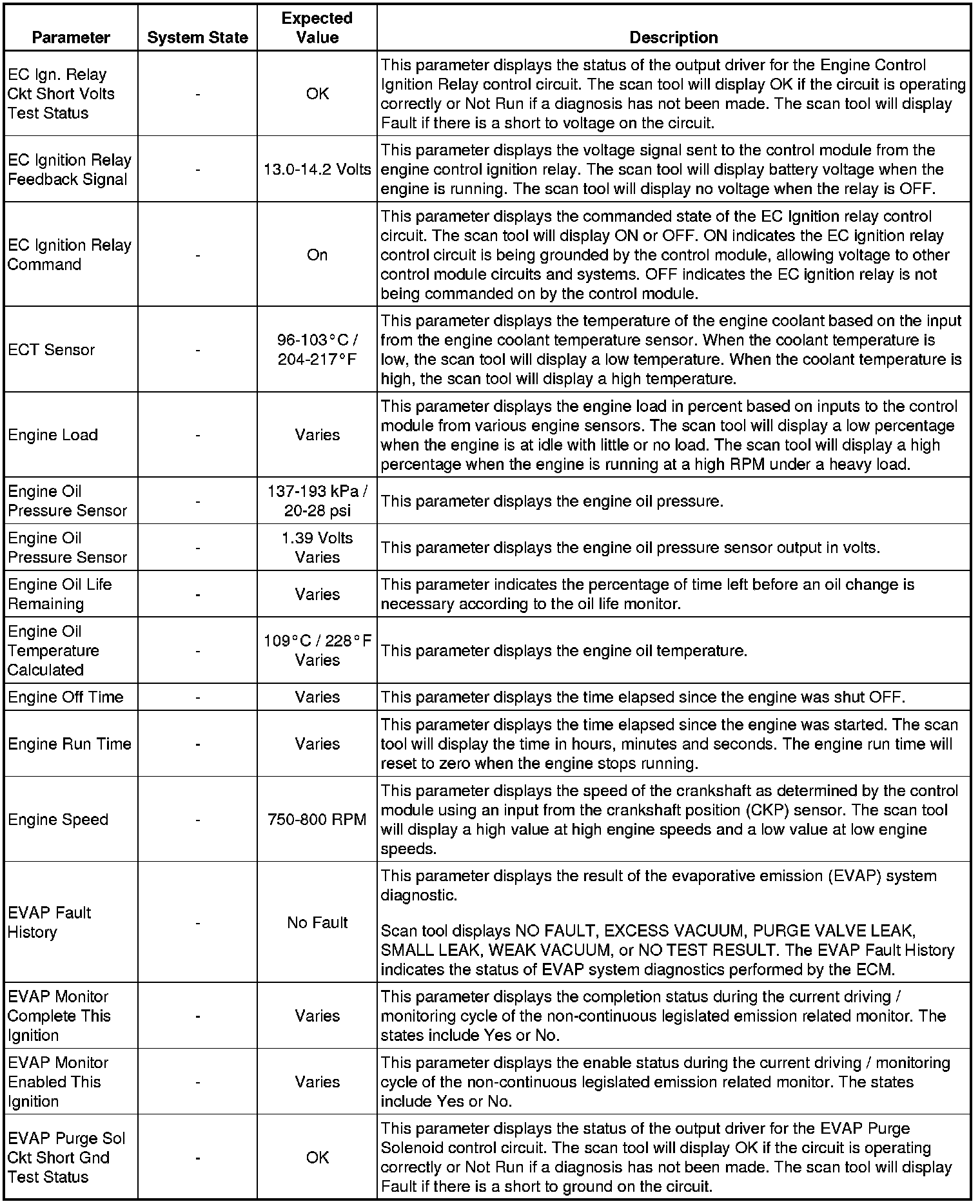 The Engine Control Module Scan Tool Data List contains all engine-related parameters that are available on the scan tool. The list is arranged in alphabetical order. A given parameter may appear in any one of the data lists, and in some cases may appear more than once, or in more than one data list in order to group certain related parameters together.