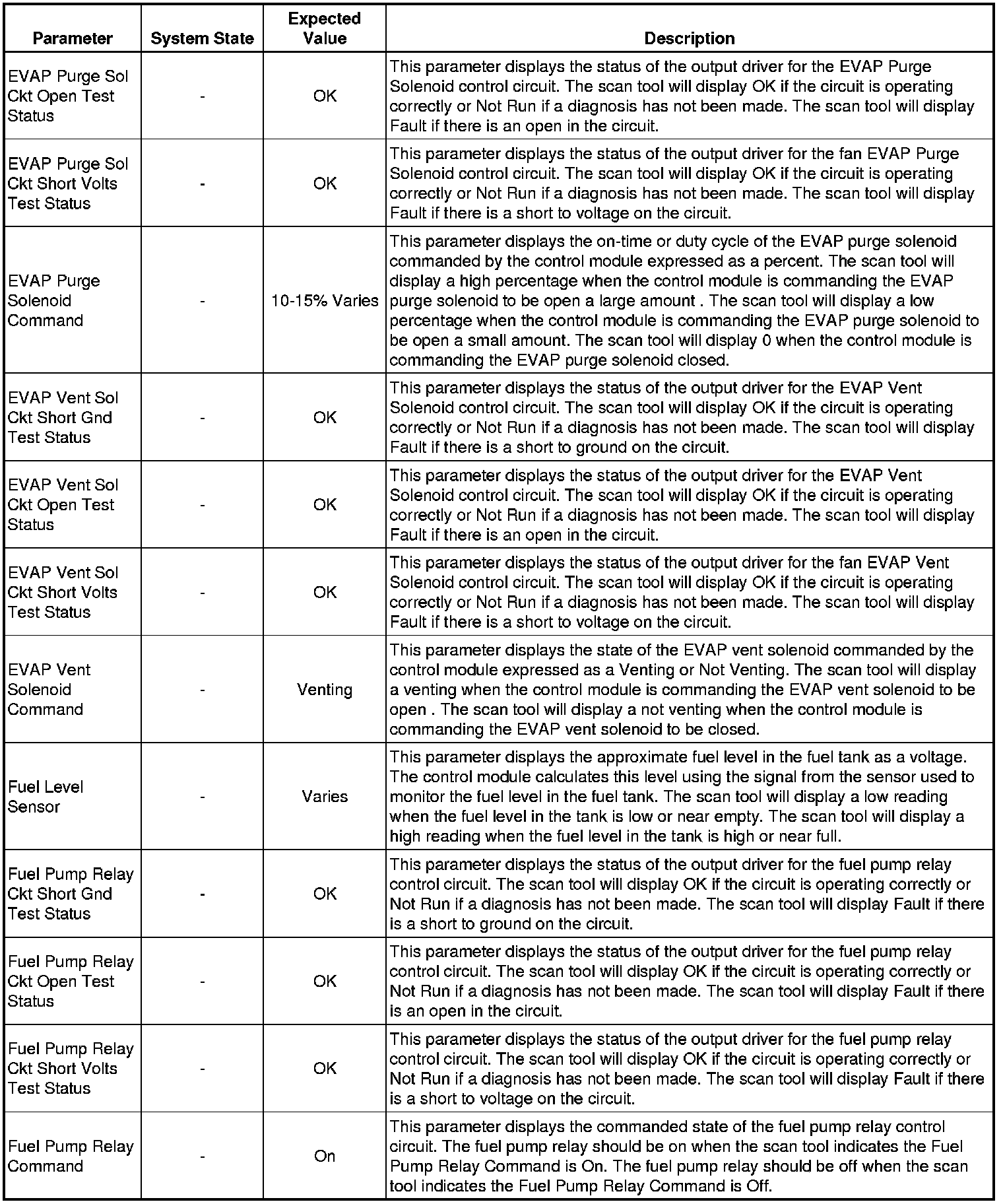 The scan tool values from a properly running engine may be used for comparison with the engine you are diagnosing. The Engine Scan Tool Data List represents values that would be seen on a normally running engine.
