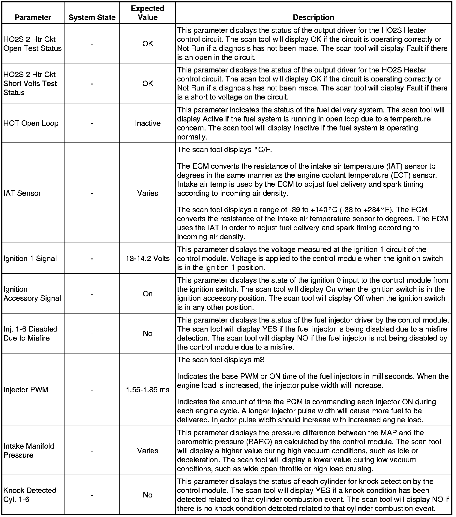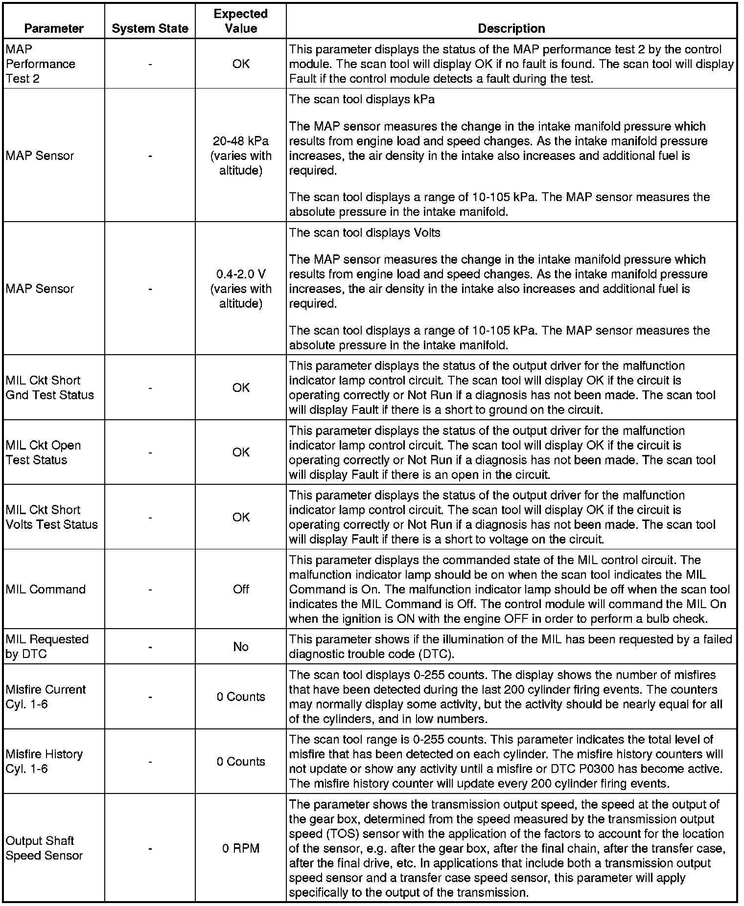 Only the parameters listed below are referenced in this service manual for use in diagnosis. If all values are within the typical range described below, refer to Symptoms - Engine Controls (Symptoms - Engine Controls) for the 3.7L engine for diagnosis.