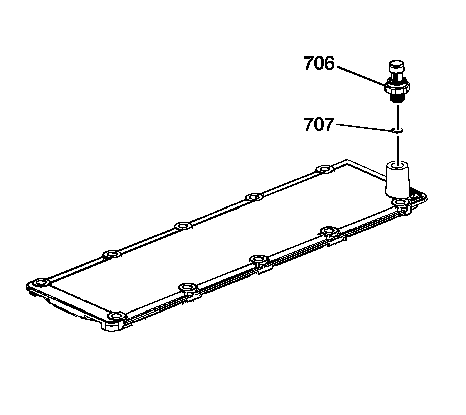 3. If not equipped with active fuel management, perform the following step, using J 41712 or equivalent. Install the oil pressure sensor (706) and washer (707).
