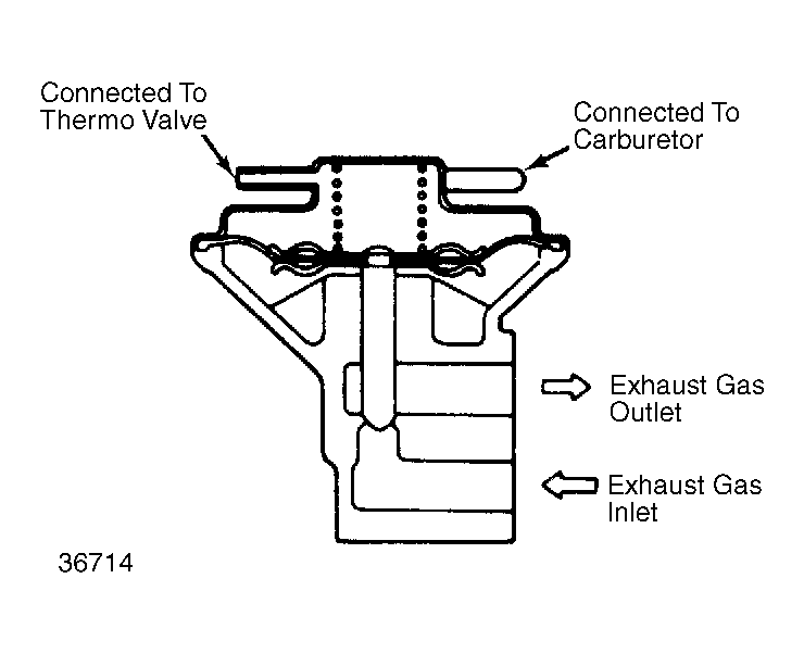 The EGR control valve is controlled by carburetor vacuum in response to throttle valve opening, while EGR flow is suspended at idle and wide open throttle operations. Thermo valve controls vacuum that is applied on EGR control valve. See Fig 1 .