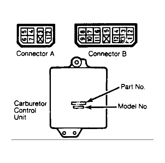 - Turn ignition switch to "OFF" position. Remove harness connectors "A" and "B" from Carburetor Control Unit (CCU). See Fig 1 .