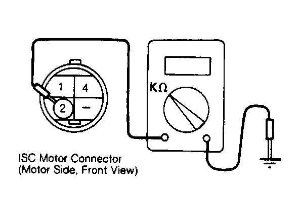 1. Disconnect ISC motor connector. Check motor coil continuity between terminals No. 1 and 4. See Figure . Resistance should be 5-35 ohms. If resistance is zero ohms or abnormally large, an open or short exists in motor coil. Replace ISC servo assembly.