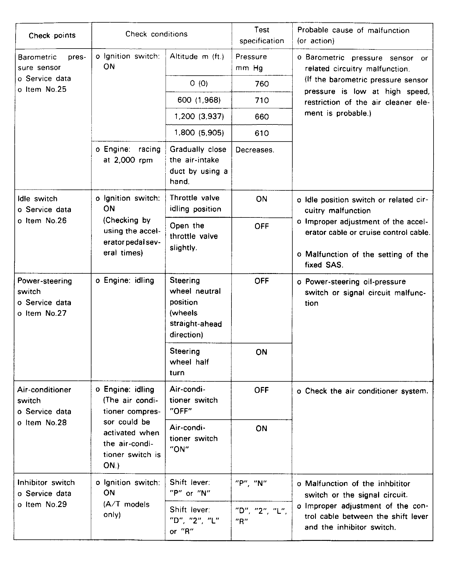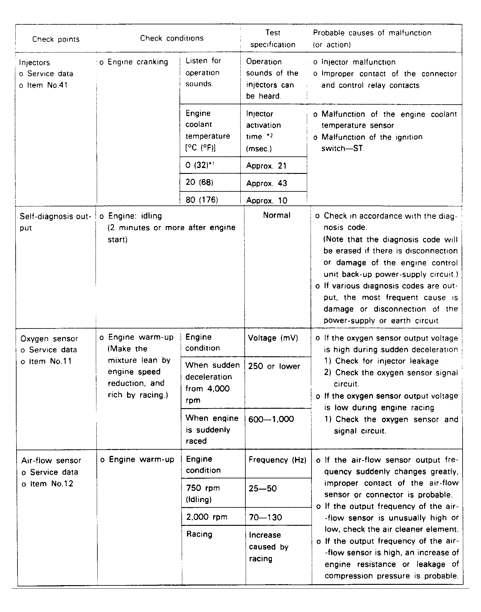 Fuel Pres., Injectors, Vacuum Leak, O2 Sensor |