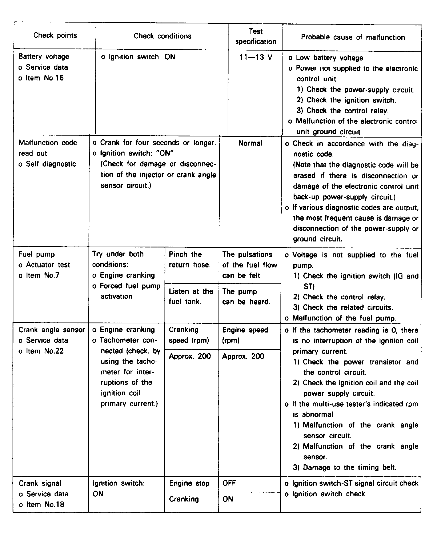 - If using scan tool, and malfunction indicator light comes on while various checks are being made, check self-diagnostic output.