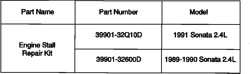 Home >> Hyundai >> 1991 >> Sonata L4-2.4L >> Repair and Diagnosis >> Powertrain Management >> Computers and Control Systems >> Relays and Modules - Computers and Control Systems >> Engine Control Module >> Technical Service Bulletins >> All Technical Service Bulletins >> Engine - Stalls Shifting Into Gear At Idle