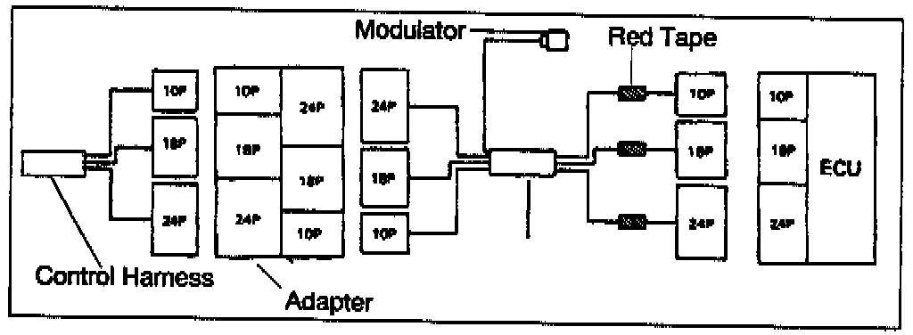 Installation of extension harness, attach end with red tape to the ECU.