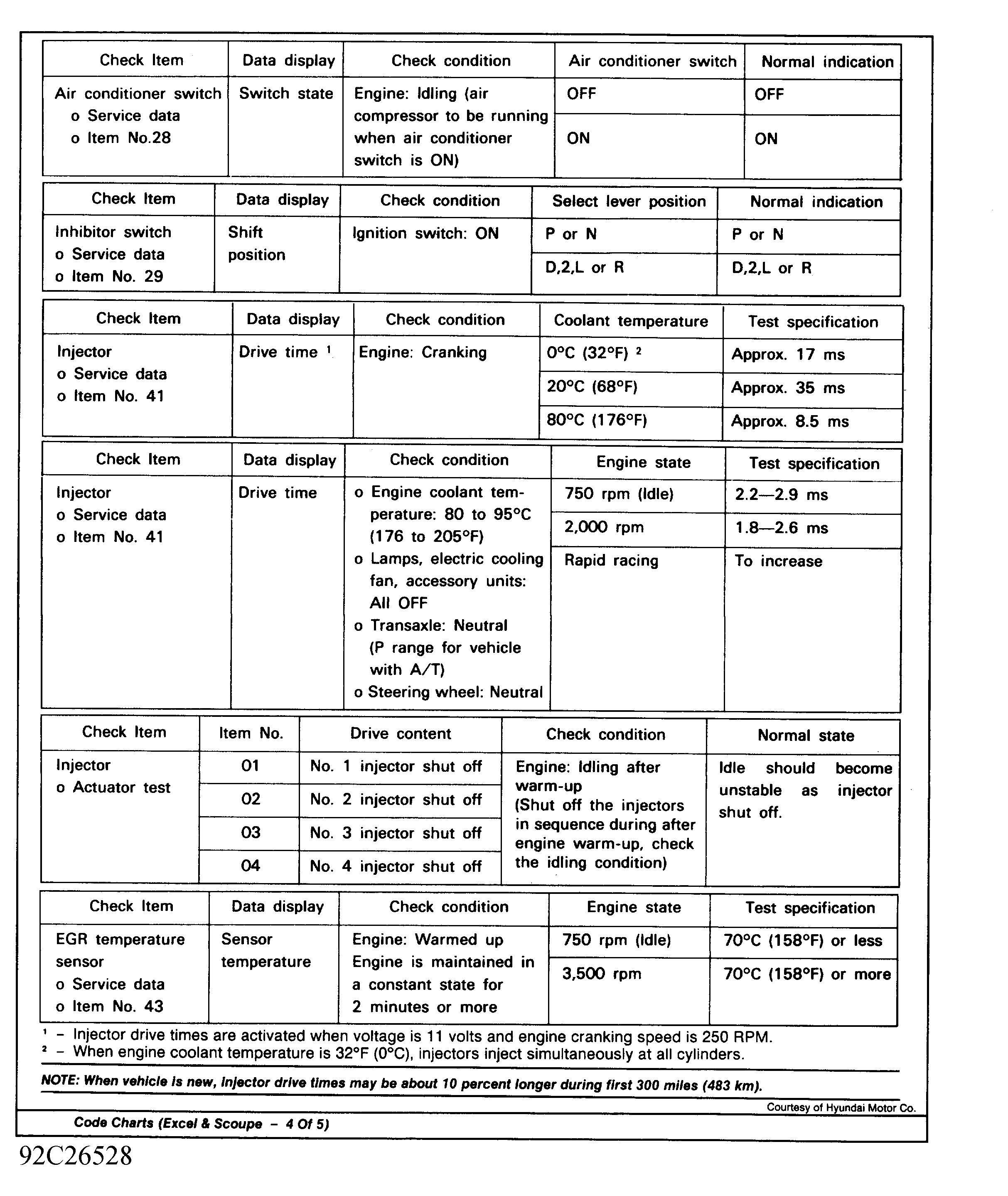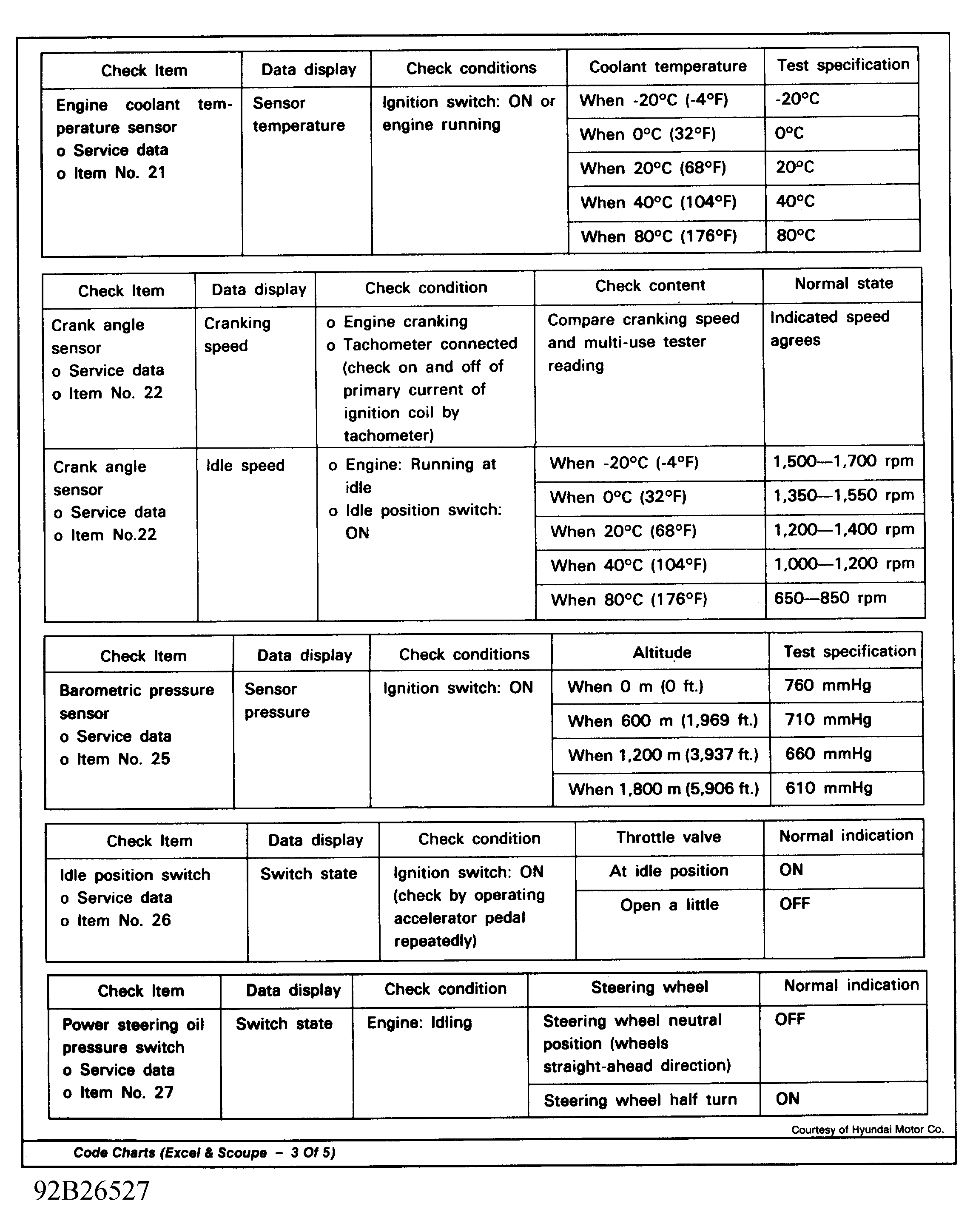 Home >> Hyundai >> 1992 >> Excel GL, Automatic >> Repair and Diagnosis >> Engine Performance >> System >> Engine Controls - Tests W/Codes >> Code Charts >> Trouble Code Definition Tables