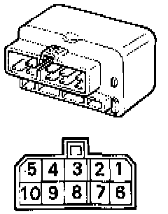 2. Connect a 12V power supply (-) terminal to the terminal 10 of the multipoint fuel injection control relay and check the continuity between terminals 3 and 4 when the (+) terminal is connected to and disconnected from the terminal 7.