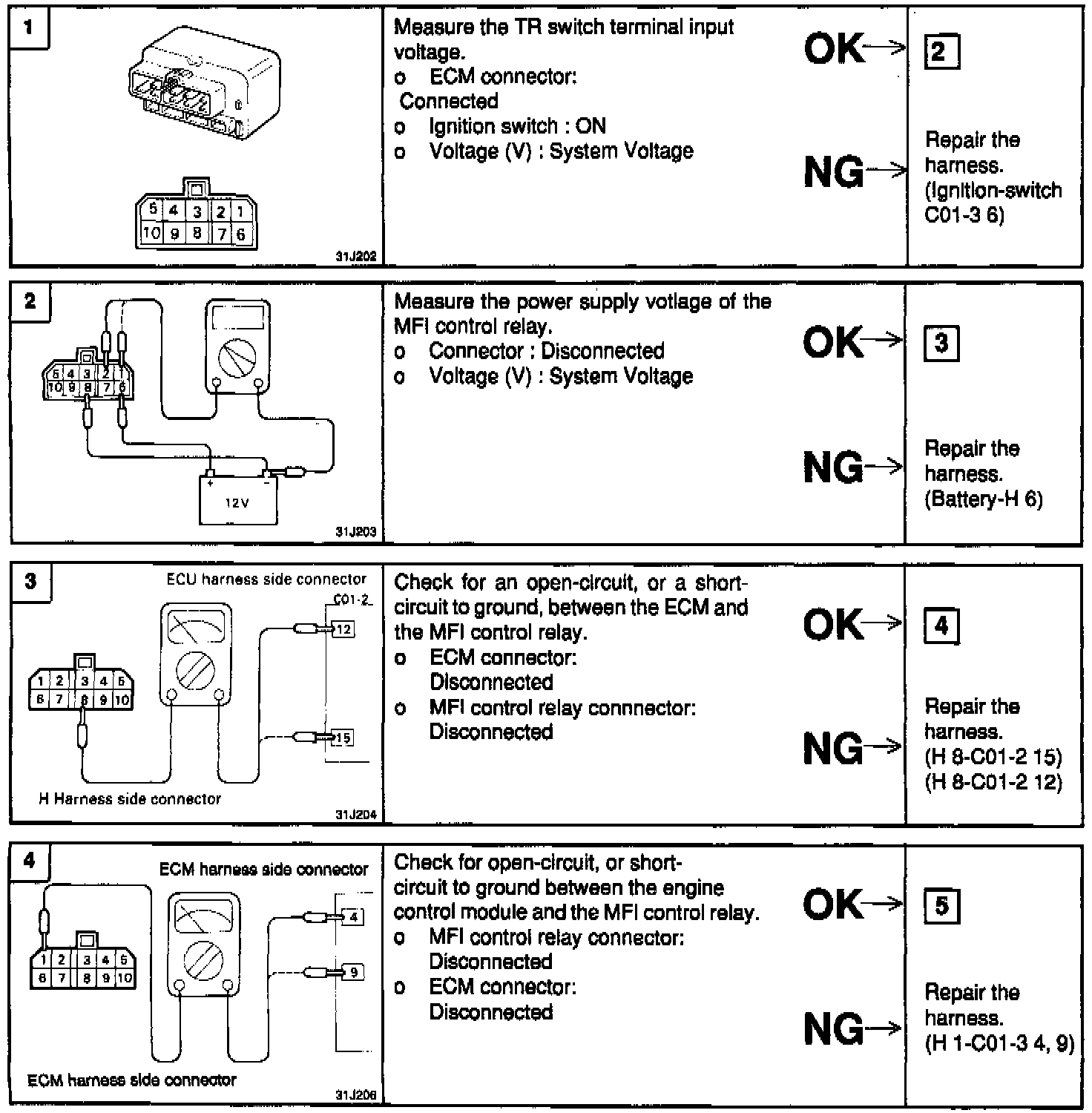 4. If one of the above is improper, replace the multipoint fuel injection control relay.
