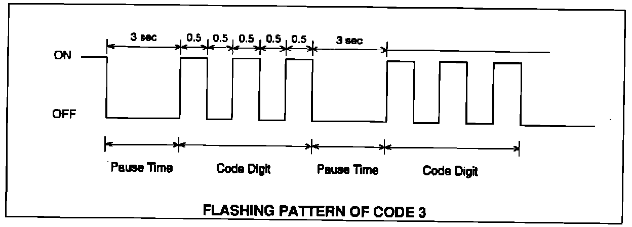 The "CRUISE" indicator on the instrument panel will begin to flash a code describing the condition of the system. The pattern in which the indicator flashes will reveal the specific area needing service. The illustration is an example of how the "CRUISE" indicator would flash code 3.