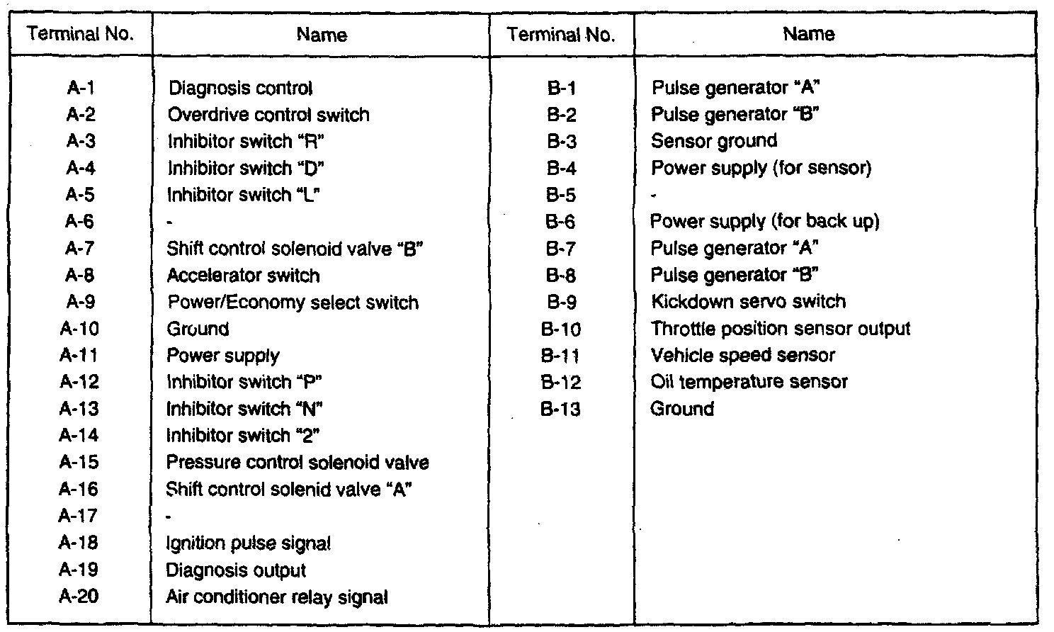 Transmission Control Unit Pin-out: