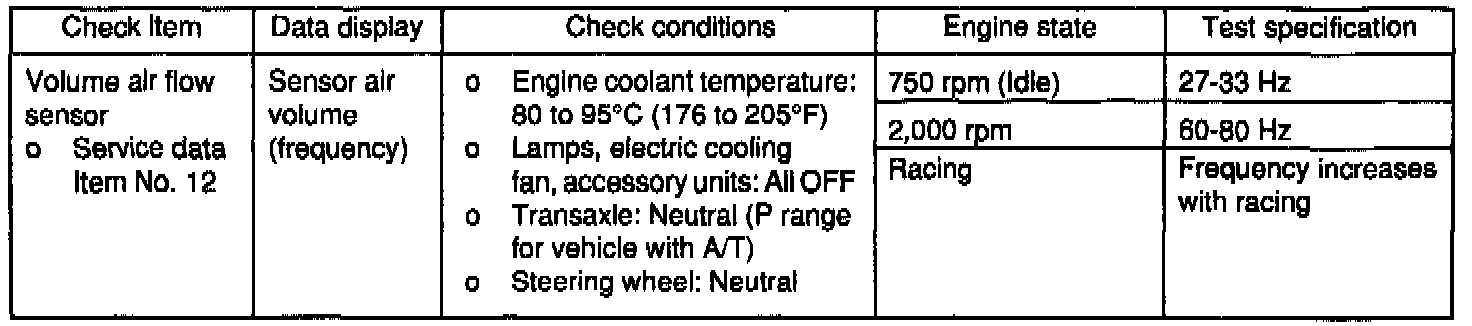 3. If the engine can be idle even if the volume air flow sensor output frequency is out of specification, check for the following conditions: