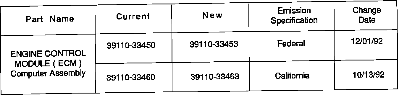 Home >> Hyundai >> 1993 >> Elantra L4-1.8L >> Repair and Diagnosis >> Powertrain Management >> Computers and Control Systems >> Relays and Modules - Computers and Control Systems >> Engine Control Module >> Technical Service Bulletins >> Customer Interest >> Engine - Stalling/Poor Driveability When Cold