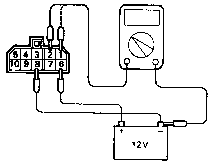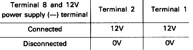 1. Connect a 12V power supply (+) terminal to the terminal 6of the control relay and measure the voltages at terminals 2 and 1 when the (-) terminal is connected to and disconnected from the terminal 8.