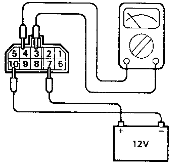 2. Connect a 12V power supply (-) terminal to the terminal 10 of the control relay and check the continuity between terminals 3 and 4 when the (+) terminal is connected to and disconnected from the terminal 7.