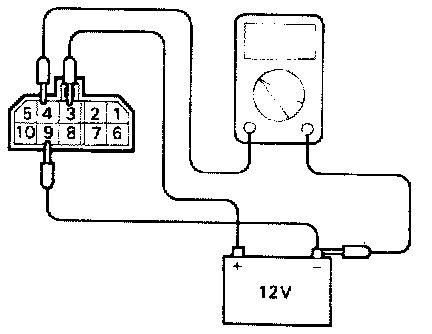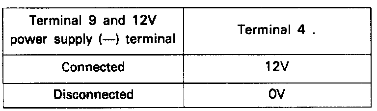 3. Connect a 12V power supply (+) terminal to the terminal 3 of the control relay and measure the voltages at the terminal 4 when the (-) terminal is connected to and disconnected from the terminal 9.
