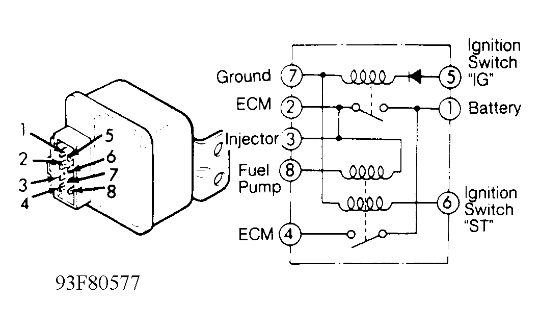Home >> Hyundai >> 1993 >> Excel GL, Standard >> Repair and Diagnosis (Single Page) >> Engine Performance >> System >> Engine Controls - System/Component Tests >> Relays >> MPI Control Relay (Excel)