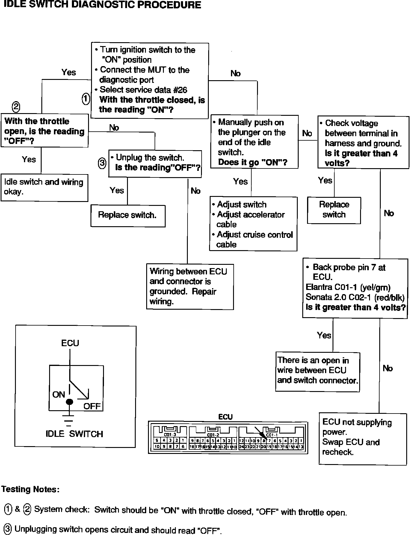 Home >> Hyundai >> 1993 >> Sonata L4-2.0L >> Repair and Diagnosis >> Powertrain Management >> Computers and Control Systems >> Relays and Modules - Computers and Control Systems >> Engine Control Module >> Technical Service Bulletins >> Customer Interest >> Idle Position Switch - Surging/Bucking, Driveability