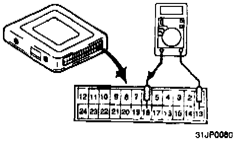 2. If a scan tool is not used, connect a digital-type voltmeter between terminal 13 and terminal 18 of the engine control module.