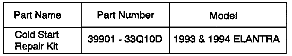 Some Elantra 1.8L DOHO engines may be difficult to start during extremely cold (below 10°F) temperatures. In order to improve this condition, a repair kit has been developed.