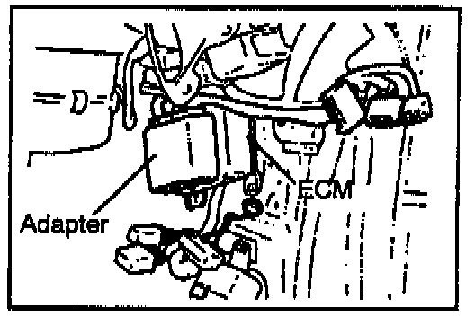 8. Peel the protective covers off the two sided tapes on the surface of the adapter and attach the adapter to the ECM as shown in the diagram