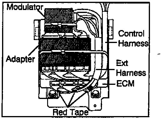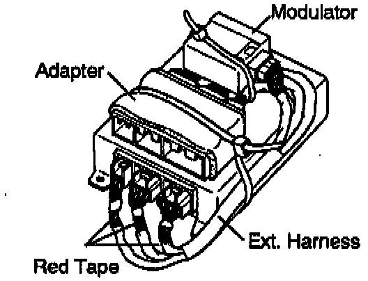 7. Strap the modulator and the extension harness together as shown in the illustration.