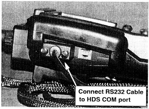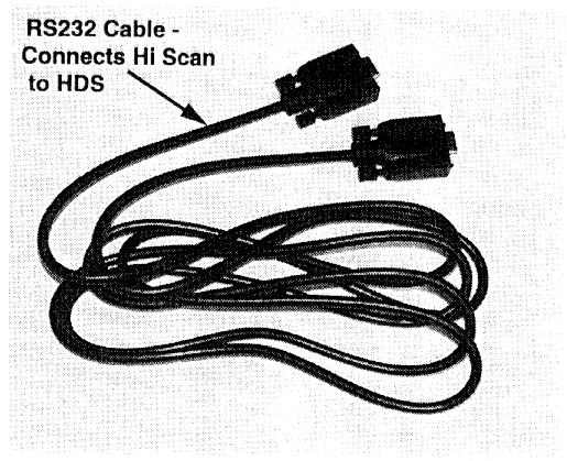 An RS232 communication cable is included in the Hi-Scan kit. This cable is used to connect the Hi-Scan to the HDS for data transfer.