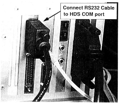 1. Connect the RS232 cable to the 9-pin COM port on the back of HDS.