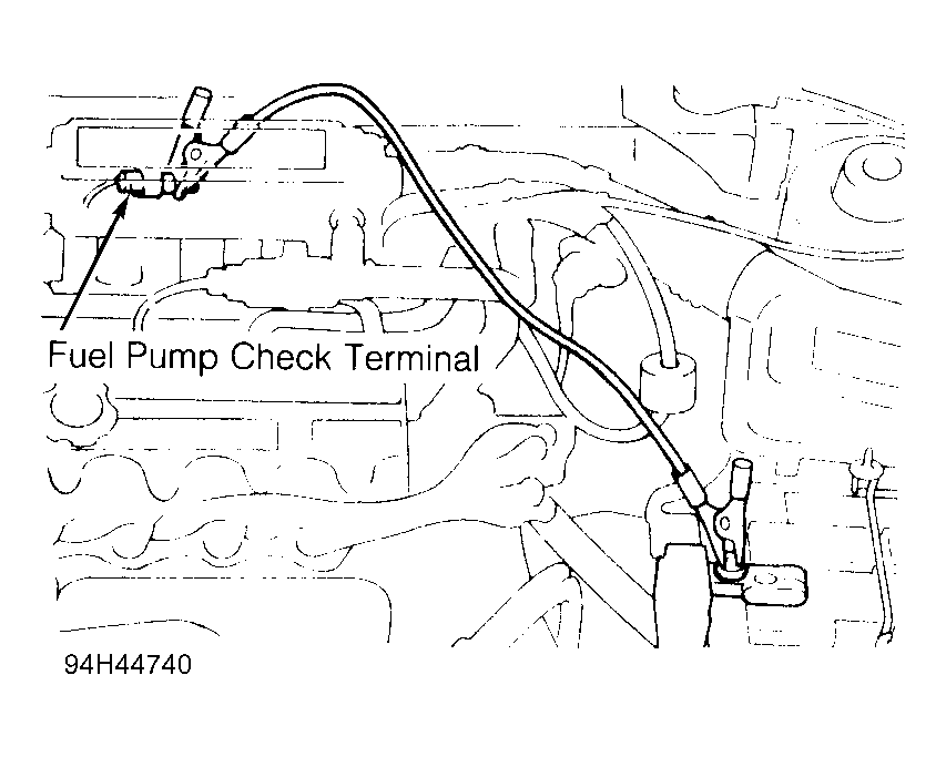 Turn ignition off. Apply battery voltage to fuel pump drive terminal (White/Black wire on Accent; Yellow wire on Scoupe). See Fig 1 , Figure , Figure or Figure . Remove fuel tank cap and listen for fuel pump operation. Pinch fuel hoses by hand and ensure fuel pressure can be felt.