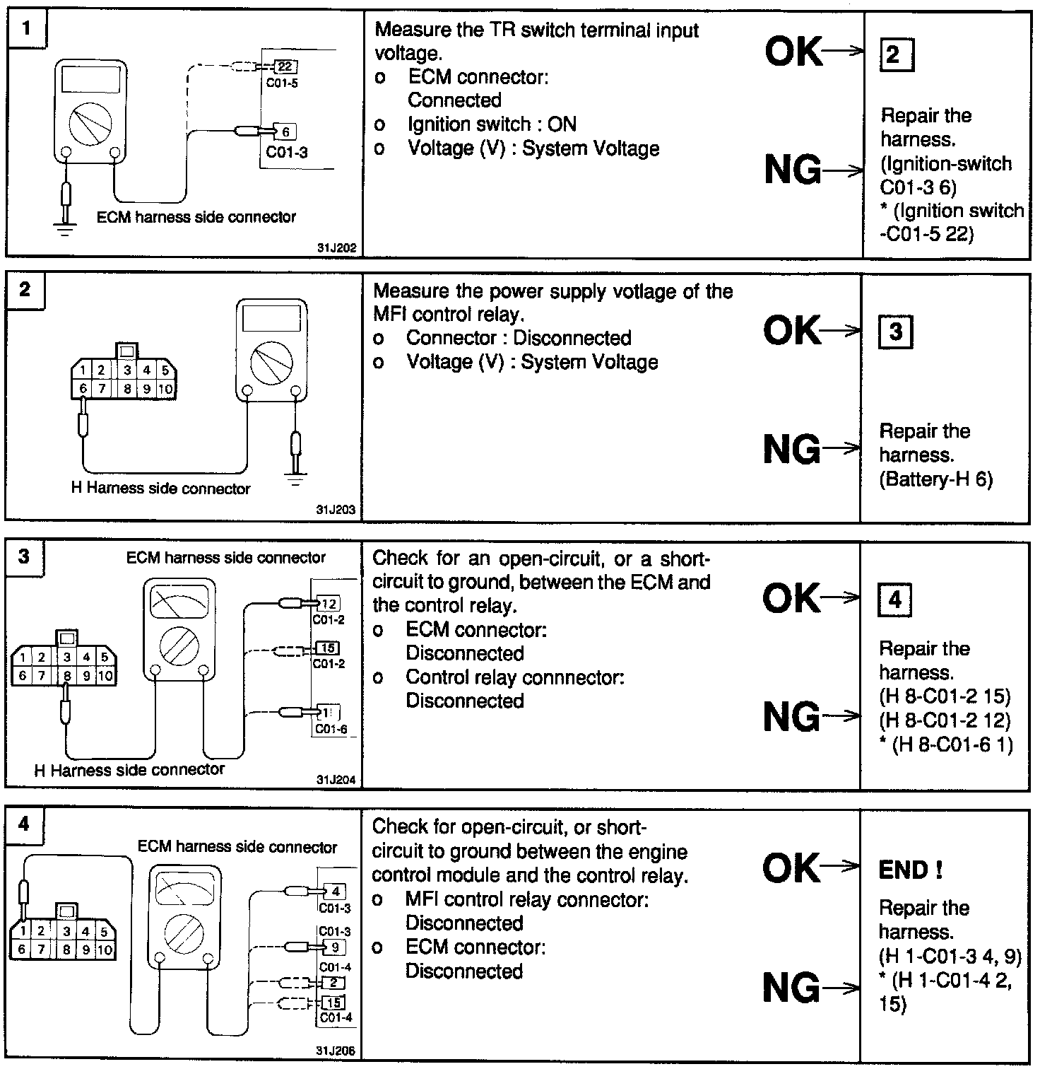 4. If one of the above is improper, replace the multipoint fuel injection control relay.