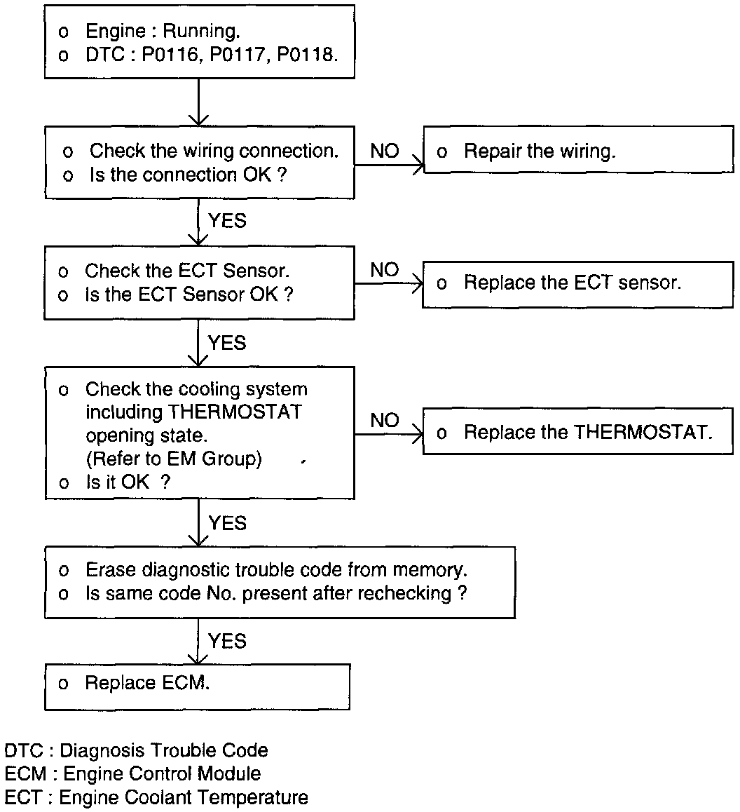 It the fast idle speed is not high enough or the engine gives off dark smoke during the engine warm-up operation, it might be caused by the engine coolant temperature sensor.