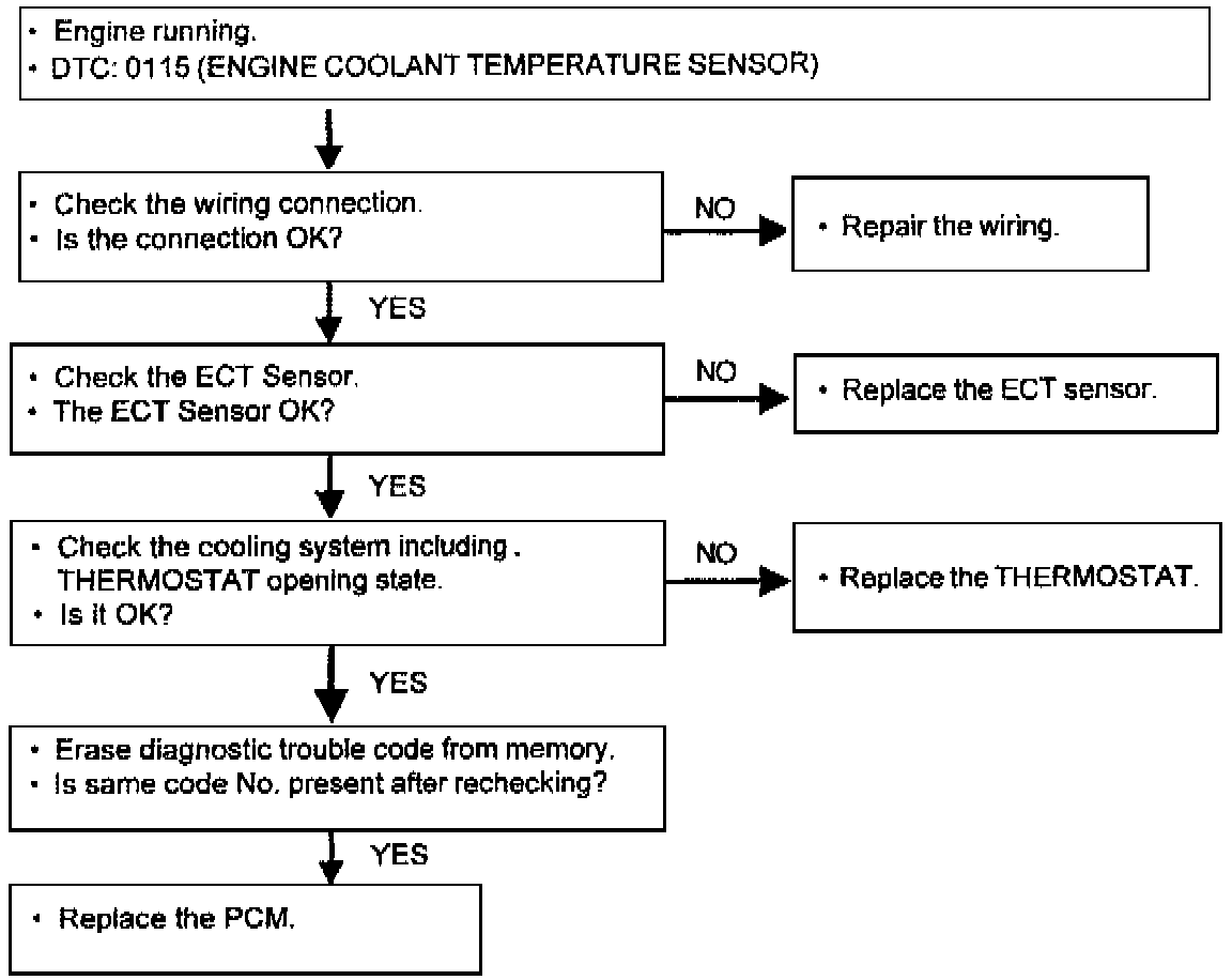 2. If the thermostat opening state is abnormal and causes overcooling, the Diagnostic Code (DTC) for the engine coolant temperature sensor can be set.