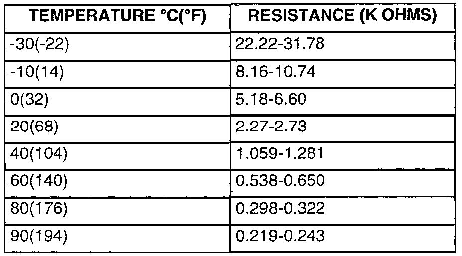 3. If the resistance deviates from the standard value (as shown on the chart), replace the sensor.