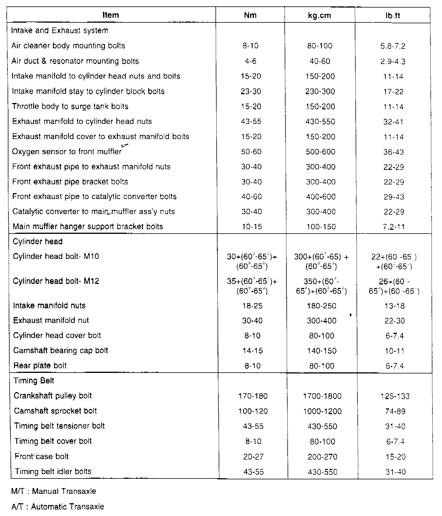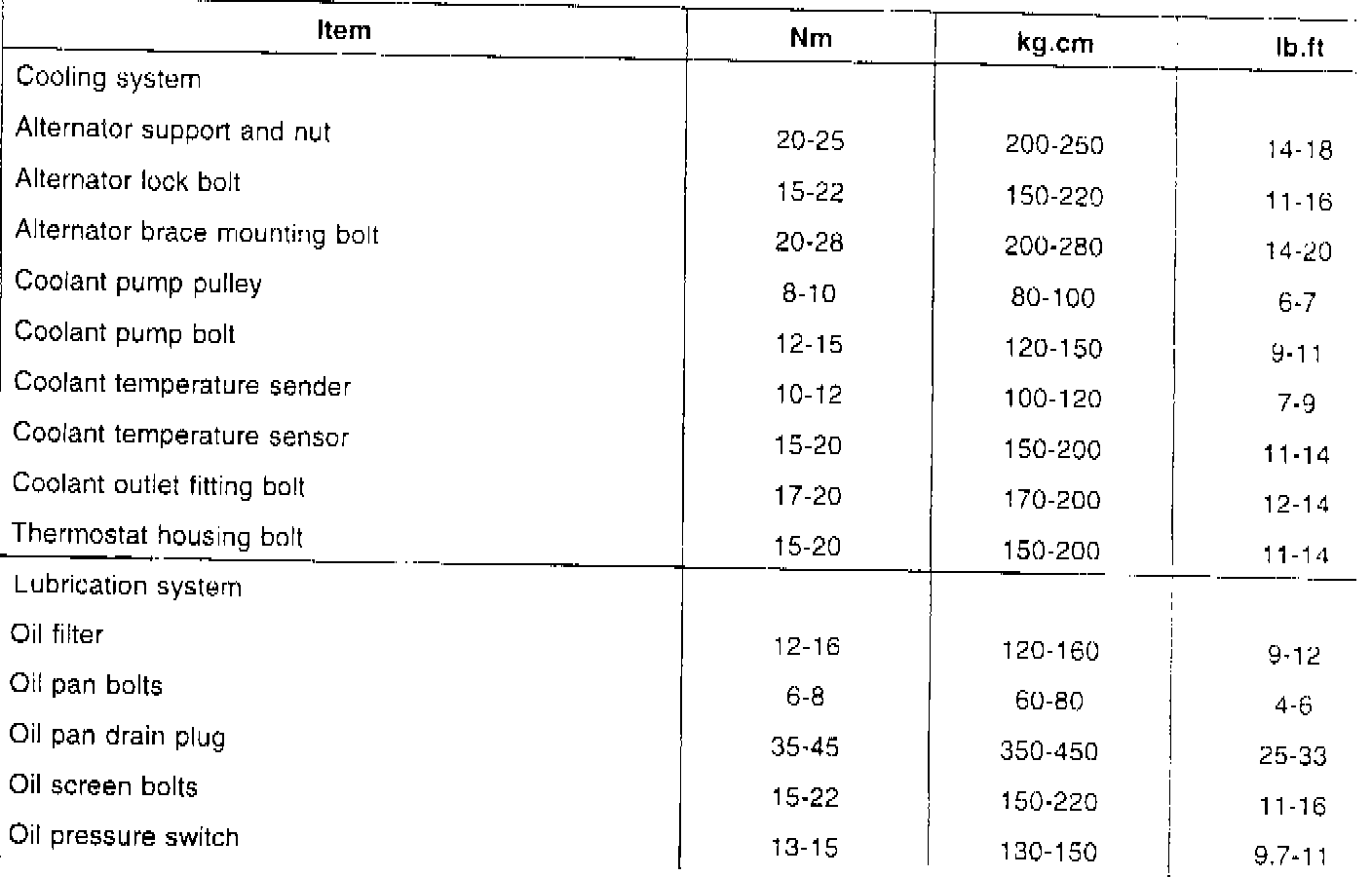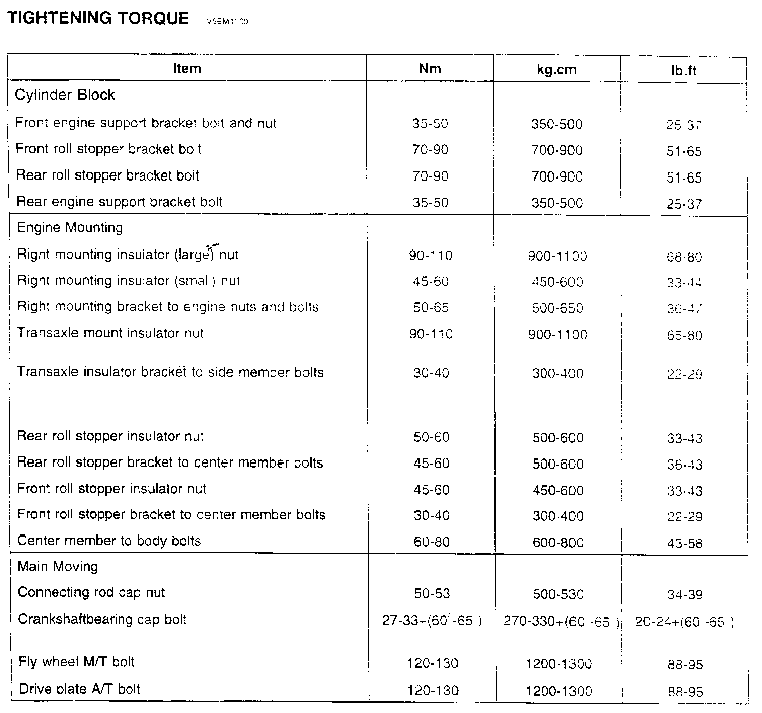 Tightening Torque Specifications