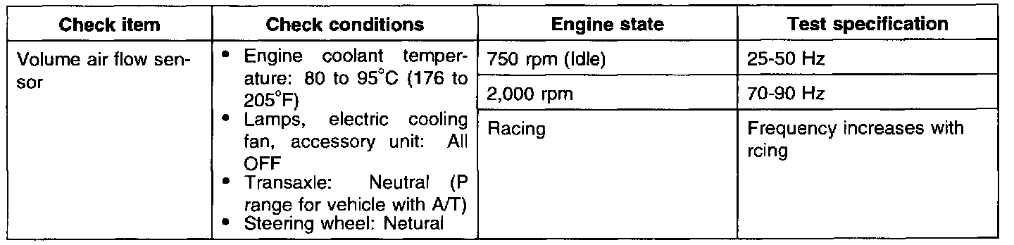 NOTE: When the vehicle is new [within initial operation of about 500 km (300 miles)], the volume air flow sensor output frequency may be about 10% higher.