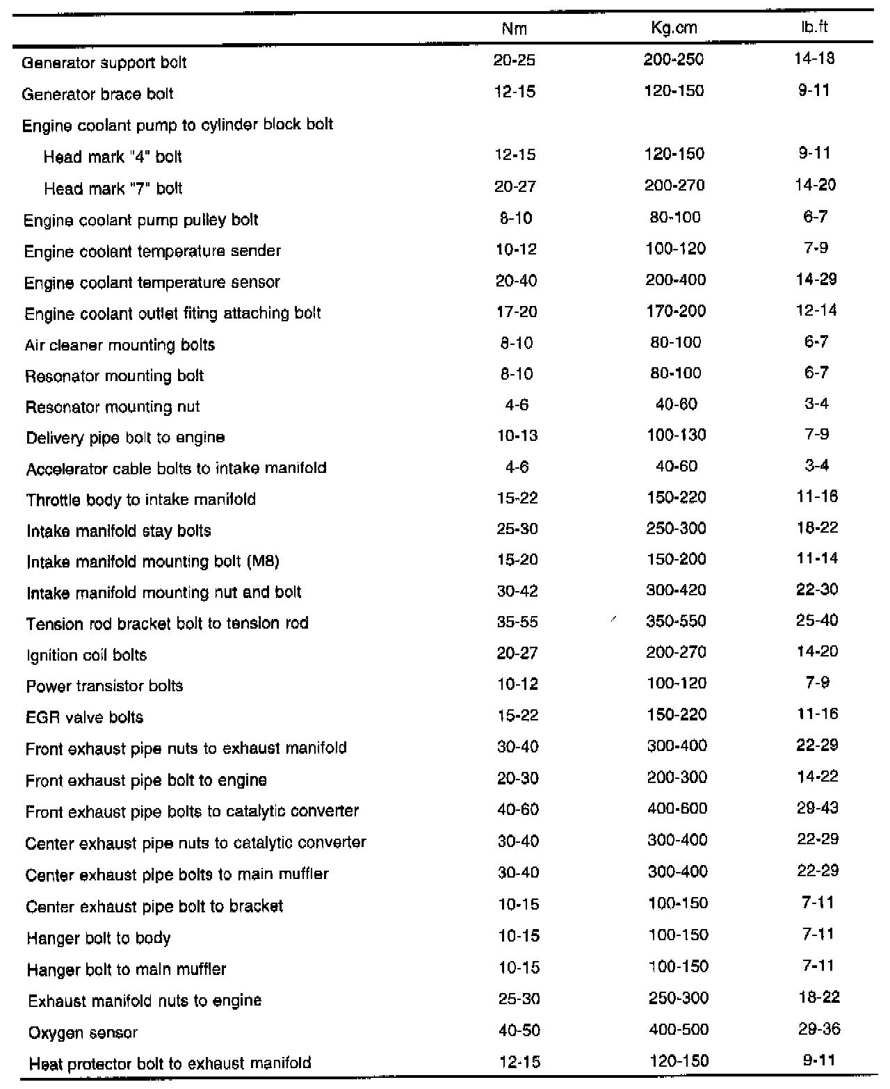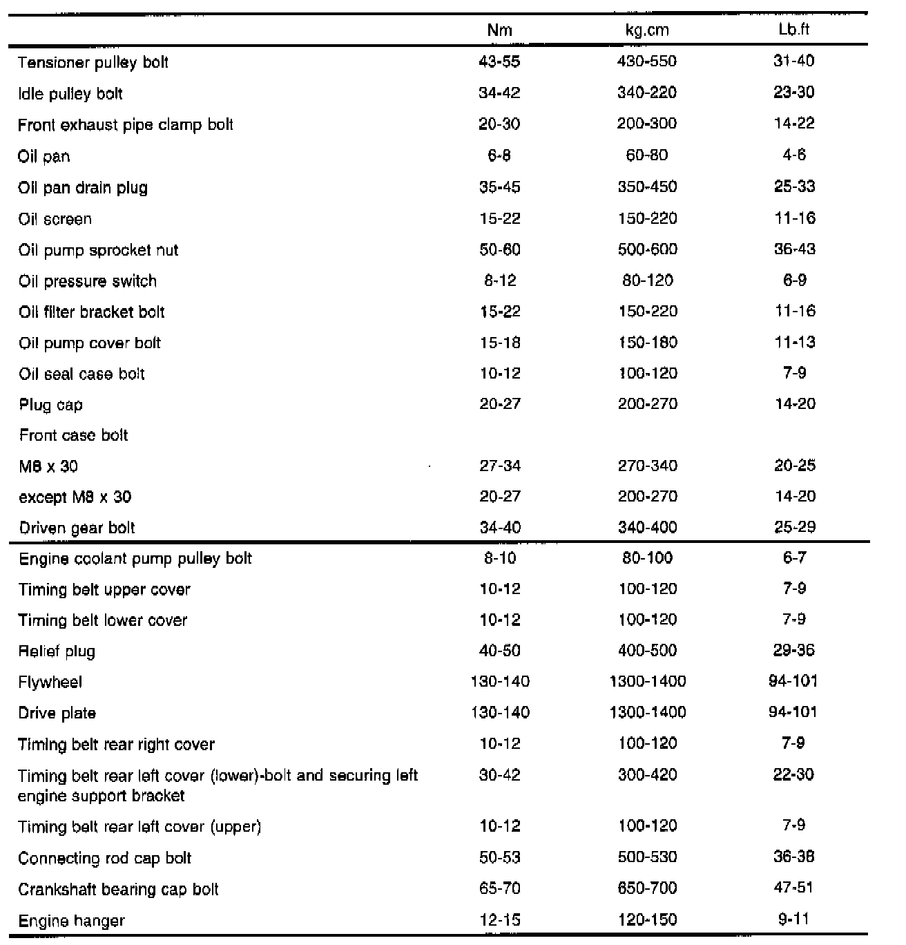 Torque 19-21 Nm (190 - 210 kg.cm., 14 - 15 lb.ft.)