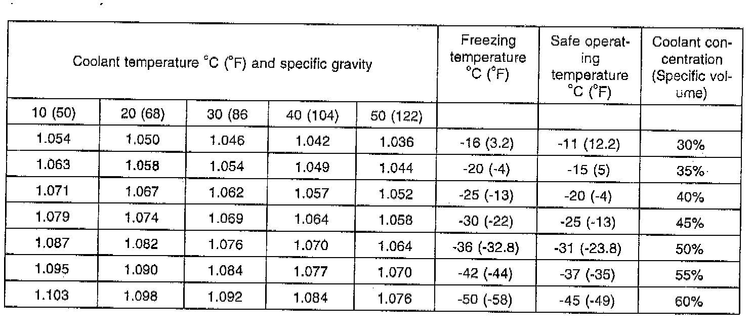 Mixture ratio of anti-freeze in coolant: 50%
